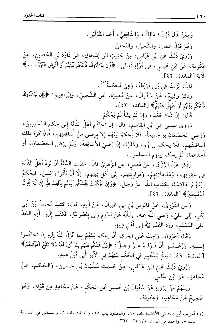 وَرُوِيَ ذَلِكَ عن بن عباس من حديث بن إِسْحَاقَ عَنْ دَاوُدَ بْنِ الْحُصَيْنِ عَنْ عِكْرِمَةَ عن بن عباس في قوله تعالى (فان جاؤوك فَاحْكُمْ بَيْنَهُمْ أَوْ أَعْرِضْ عَنْهُمْ) الْآيَةَ الْمَائِدَةِ 42