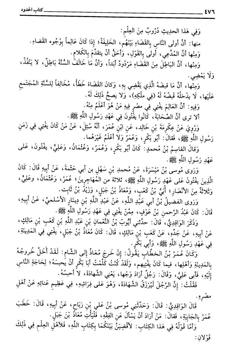 وروي عن عكرمة بن خالد عن بن عُمَرَ أَنَّهُ سُئِلَ عَنْ مَنْ كَانَ يَفْتِي فِي زَمَنِ رَسُولِ اللَّهِ صَلَّى اللَّهُ عَلَيْهِ وَسَلَّمَ فَقَالَ أَبُو بَكْرٍ وَعُمَرُ وَلَا أَعْلَمُ غَيْرَهُمَا