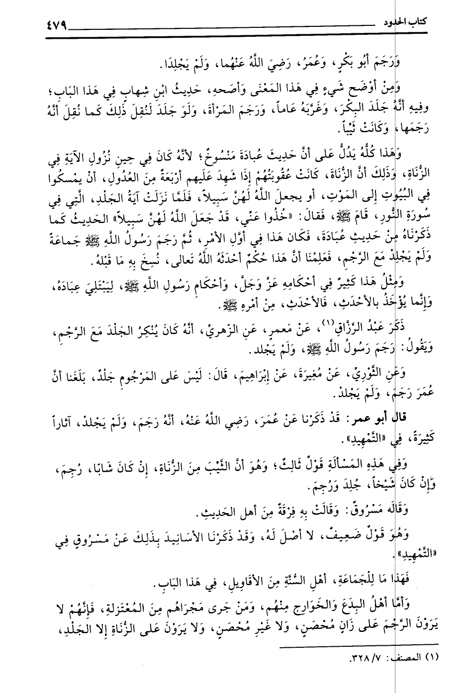 وَأَمَّا أَهْلُ الْبِدَعِ وَالْخَوَارِجُ مِنْهُمْ وَمَنْ جَرَى مَجْرَاهُمْ مِنَ الْمُعْتَزِلَةِ فَإِنَّهُمْ لَا يَرَوْنَ الرَّجْمَ عَلَى زَانٍ مُحْصَنٍ وَلَا غَيْرِ مُحْصَنٍ وَلَا يَرَوْنَ عَلَى الزُّنَاةِ إِلَّا الْجَلْدَ