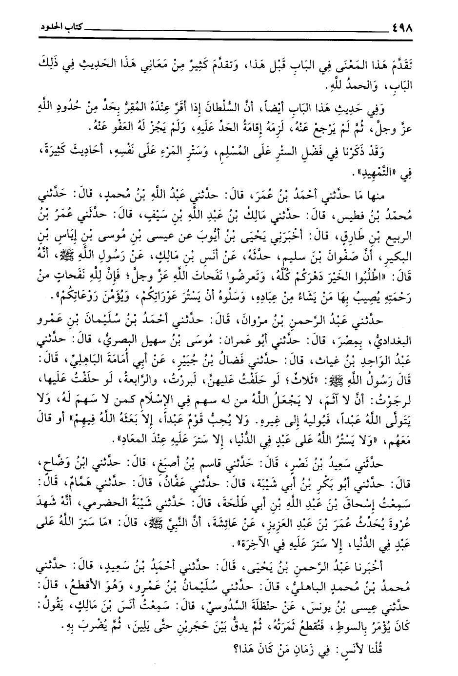 وَقَدْ ذَكَرْنَا فِي فَضْلِ السَّتْرِ عَلَى الْمُسْلِمِ وَسَتْرِ الْمَرْءِ عَلَى نَفْسِهِ أَحَادِيثَ كَثِيرَةً فِي (التَّمْهِيدِ)
