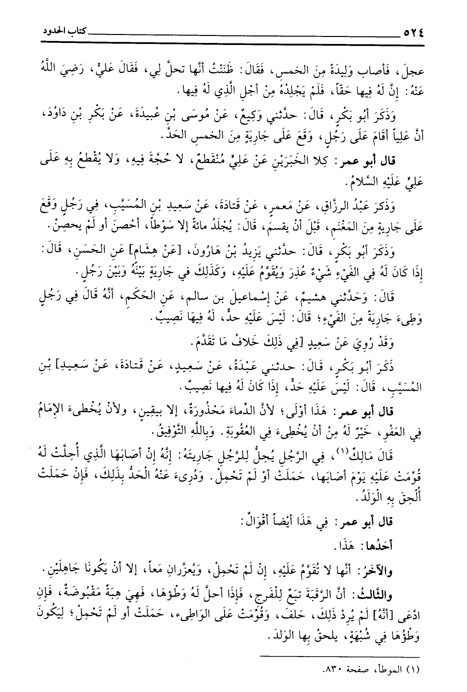 عجل فأصاب وليدة من الخمس وقال ظَنَنْتُ أَنَّهَا تَحِلُّ لِي فَقَالَ عَلِيٌّ رَضِيَ اللَّهُ عَنْهُ إِنَّ لَهُ فِيهَا حَقًّا فَلَمْ يَجْلِدْهُ مِنْ أَجْلِ الَّذِي لَهُ فِيهَا