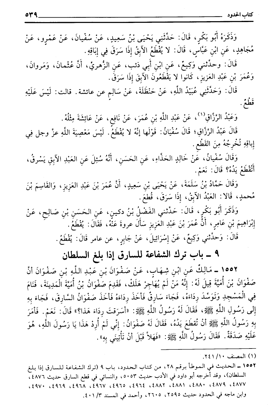 (9 - بَابُ تَرْكِ الشَّفَاعَةِ لِلسَّارِقِ إِذَا بَلَغَ السُّلْطَانَ)
