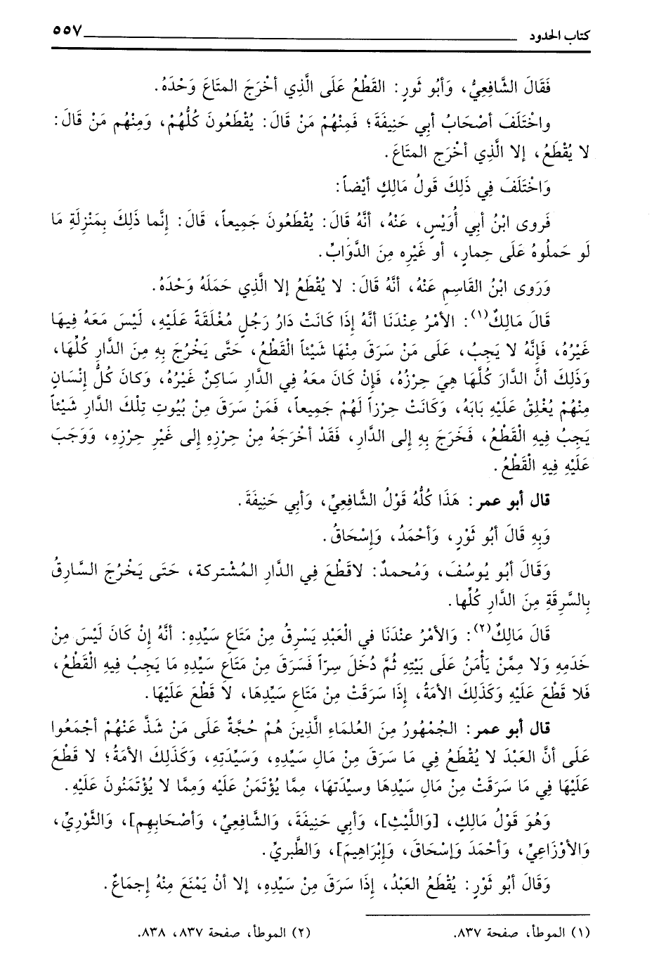 قَالَ أَبُو عُمَرَ الْجُمْهُورُ مِنَ الْعُلَمَاءِ الَّذِينَ هُمْ حُجَّةٌ عَلَى مَنْ شَذَّ عَنْهُمْ اجمعوا على ان العبد لا يقطع في ما سَرَقَ مِنْ مَالِ سَيِّدِهِ وَسَيِّدَتِهِ وَكَذَلِكَ الْأَمَةُ لا قطع عليها في ما سَرَقَتْ مِنْ مَالِ سَيِّدِهَا وَسَيِّدَتِهَا مِمَّا يُؤْتَمَنُ عليه ومما لا يؤتمنون عَلَيْهِ