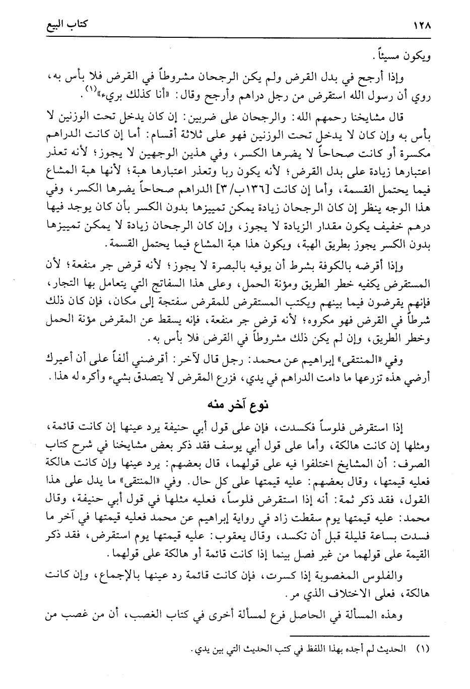 وإذا أرجح في بدل القرض ولم يكن الرجحان مشروطاً في القرض فلا بأس به، روي أن رسول الله استقرض من رجل دراهم وأرجح وقال: «أنا كذلك بريء» .