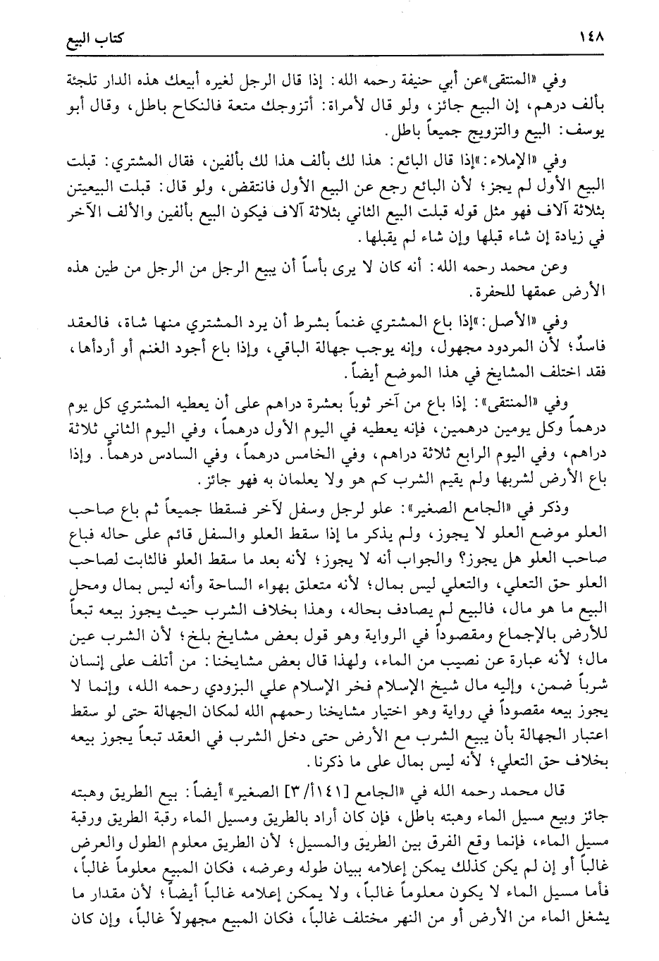 قال محمد رحمه الله في «الجامع (141أ3) الصغير» أيضاً: بيع الطريق وهبته جائز وبيع مسيل الماء وهبته باطل، فإن كان أراد بالطريق ومسيل الماء رقبة الطريق ورقبة مسيل الماء، فإنما وقع الفرق بين الطريق والمسيل؛ لأن الطريق معلوم الطول والعرض غالباً أو إن لم يكن كذلك يمكن إعلامه ببيان طوله وعرضه، فكان المبيع معلوماً غالباً، فأما مسيل الماء لا يكون معلوماً غالباً، ولا يمكن إعلامه غالباً أيضاً؛ لأن مقدار ما يشغل الماء من الأرض أو من النهر مختلف غالباً، فكان المبيع مجهولاً غالباً، وإن كان