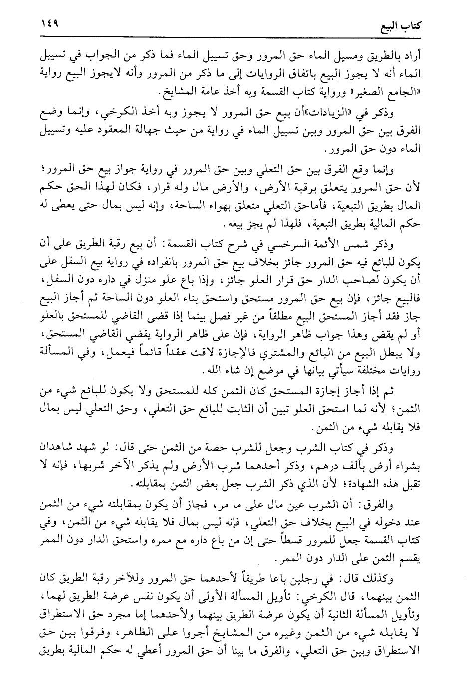 أراد بالطريق ومسيل الماء حق المرور وحق تسييل الماء فما ذكر من الجواب في تسييل الماء أنه لا يجوز البيع باتفاق الروايات إلى ما ذكر من المرور وأنه لايجوز البيع رواية «الجامع الصغير» ورواية كتاب القسمة وبه أخذ عامة المشايخ.
