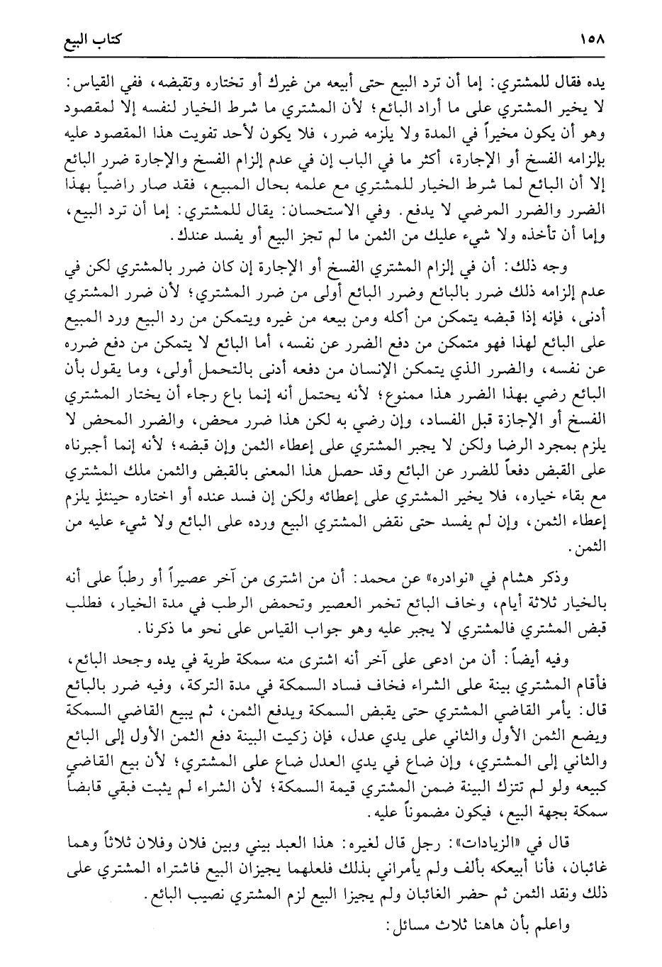 يده فقال للمشتري: إما أن ترد البيع حتى أبيعه من غيرك أو تختاره وتقبضه، ففي القياس: لا يخير المشتري على ما أراد البائع؛ لأن المشتري ما شرط الخيار لنفسه إلا لمقصود وهو أن يكون مخيراً في المدة ولا يلزمه ضرر، فلا يكون لأحد تفويت هذا المقصود عليه بإلزامه الفسخ أو الإجارة، أكثر ما في الباب إن في عدم إلزام الفسخ والإجارة ضرر البائع إلا أن البائع لما شرط الخيار للمشتري مع علمه بحال المبيع، فقد صار راضياً بهذا الضرر والضرر المرضي لا يدفع.