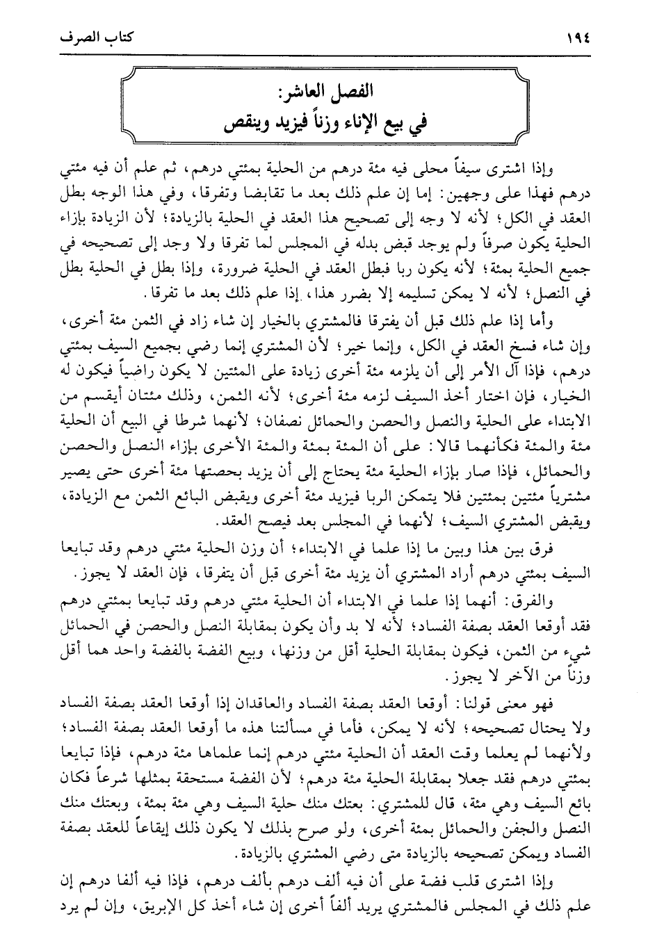 الفصل العاشر: في بيع الإناء وزناً فيزيد وينقص
