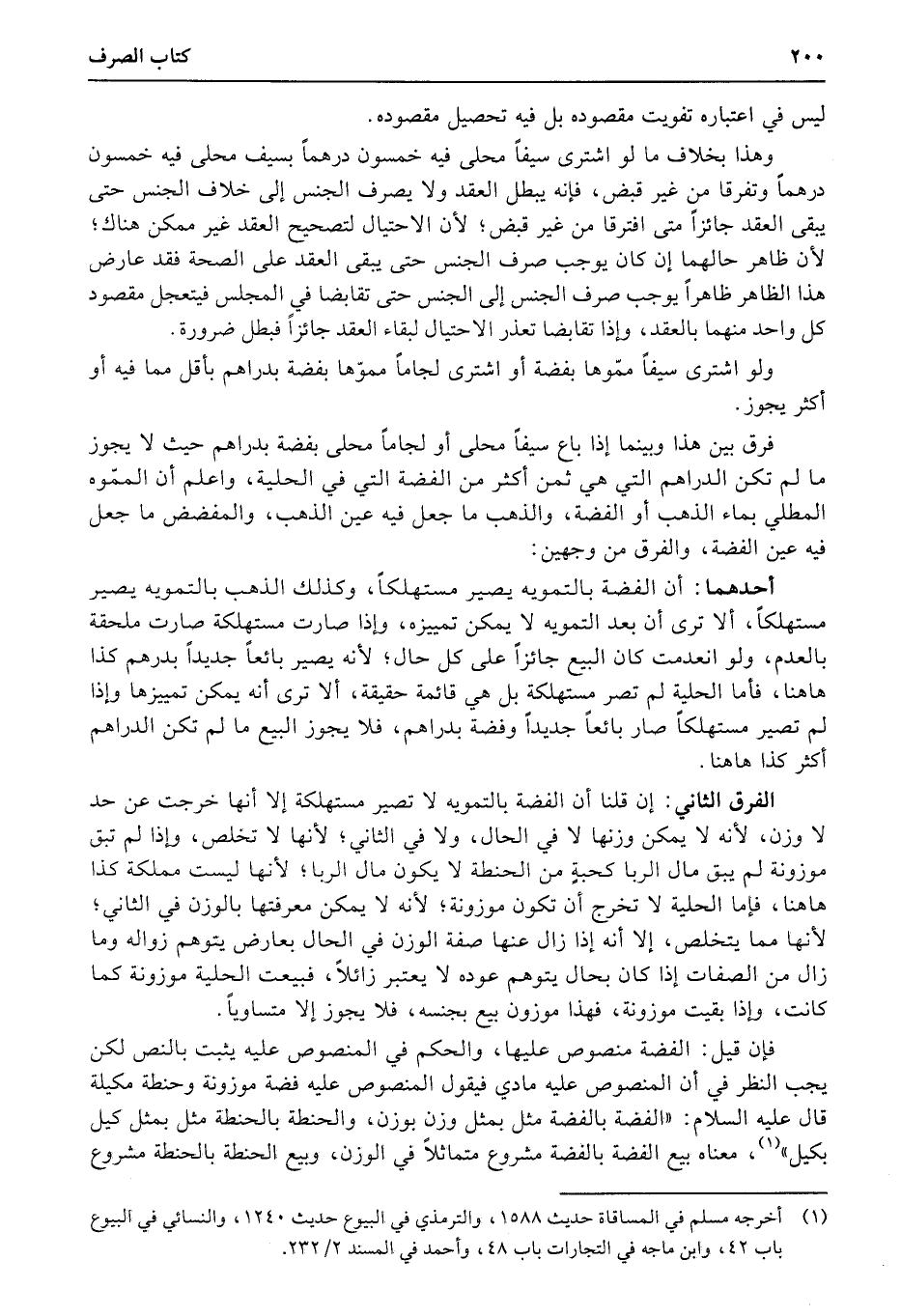 فإن قيل: الفضة منصوص عليها، والحكم في المنصوص عليه يثبت بالنص لكن يجب النظر في أن المنصوص عليه مادي فيقول المنصوص عليه فضة موزونة وحنطة مكيلة قال عليه السلام: «الفضة بالفضة مثل بمثل وزن بوزن، والحنطة بالحنطة مثل بمثل كيل بكيل» ، معناه بيع الفضة بالفضة مشروع متماثلاً في الوزن، وبيع الحنطة بالحنطة مشروع