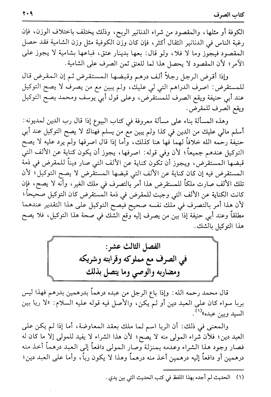 الفصل الثالث عشر: في الصرف مع مملوكه وقرابته وشريكه ومضاربه والوصي وما يتصل بذلك
