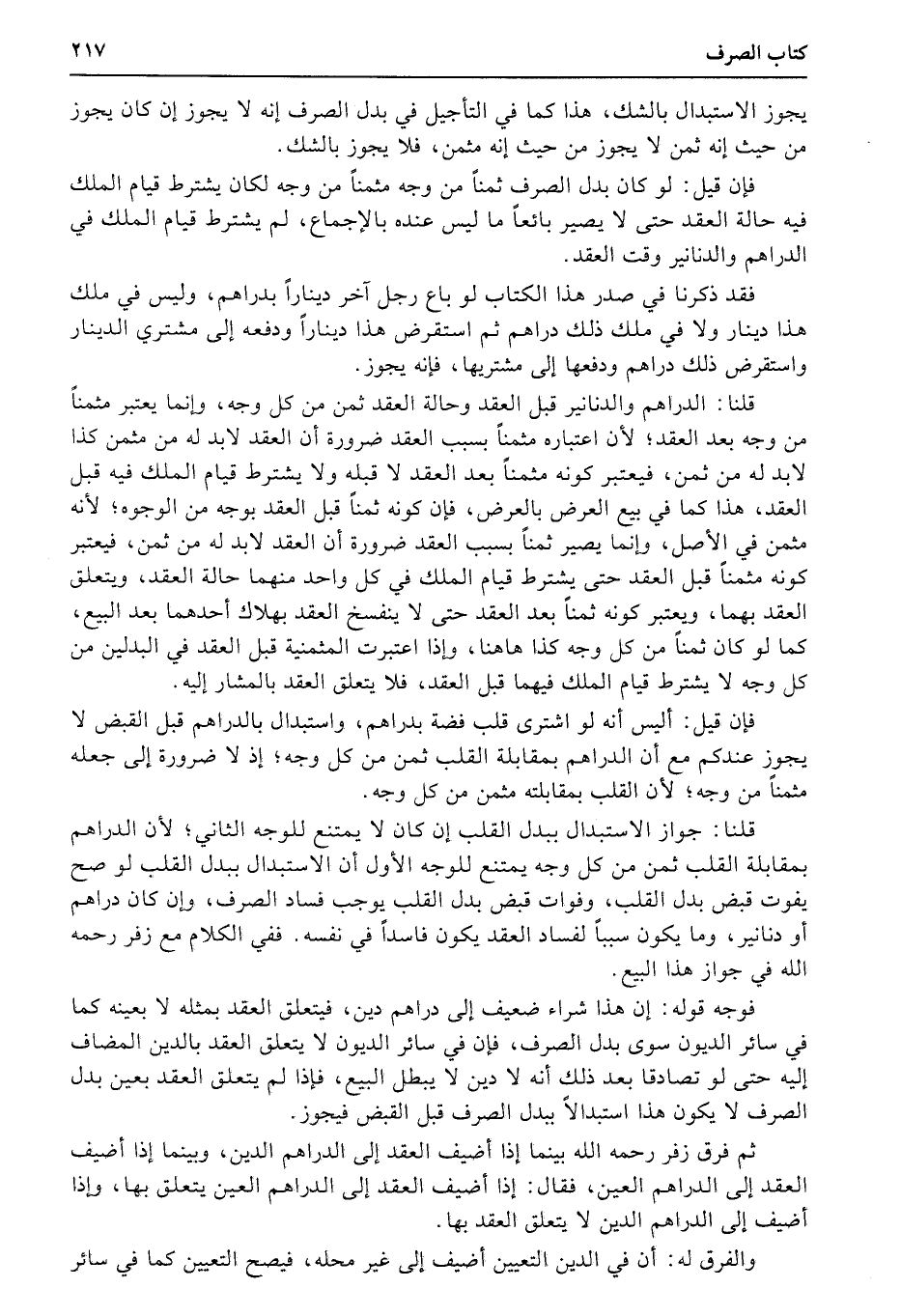فوجه قوله: إن هذا شراء ضعيف إلى دراهم دين، فيتعلق العقد بمثله لا بعينه كما في سائر الديون سوى بدل الصرف، فإن في سائر الديون لا يتعلق العقد بالدين المضاف إليه حتى لو تصادقا بعد ذلك أنه لا دين لا يبطل البيع، فإذا لم يتعلق العقد بعين بدل الصرف لا يكون هذا استبدالاً ببدل الصرف قبل القبض فيجوز.