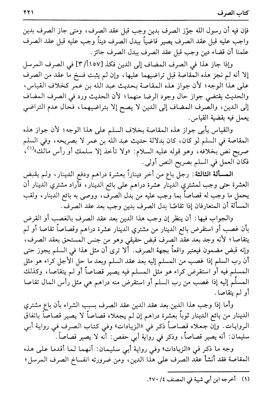 فإن فيه أن رسول الله جوّز الصرف بدين وجب قبل عقد الصرف، ومتى جاز الصرف بدين واجب عليه قبل عقد الصرف يصير قاضياً ببدل الصرف ديناً وجب عليه قبل عقد الصرف علمنا أن قضاء دين وجب قبل عقد الصرف ببدل الصرف جائز.