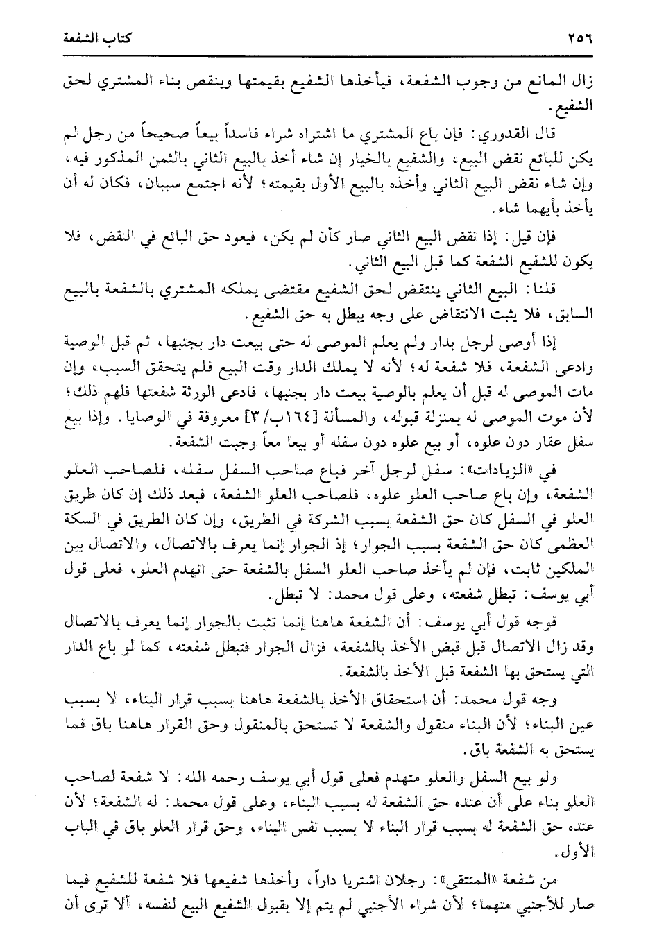 في «الزيادات» : سفل لرجل آخر فباع صاحب السفل سفله، فلصاحب العلو الشفعة، وإن باع صاحب العلو علوه، فلصاحب العلو الشفعة، فبعد ذلك إن كان طريق العلو في السفل كان حق الشفعة بسبب الشركة في الطريق، وإن كان الطريق في السكة العظمى كان حق الشفعة بسبب الجوار؛ إذ الجوار إنما يعرف بالاتصال، والاتصال بين الملكين ثابت، فإن لم يأخذ صاحب العلو السفل بالشفعة حتى انهدم العلو، فعلى قول أبي يوسف: تبطل شفعته، وعلى قول محمد: لا تبطل.