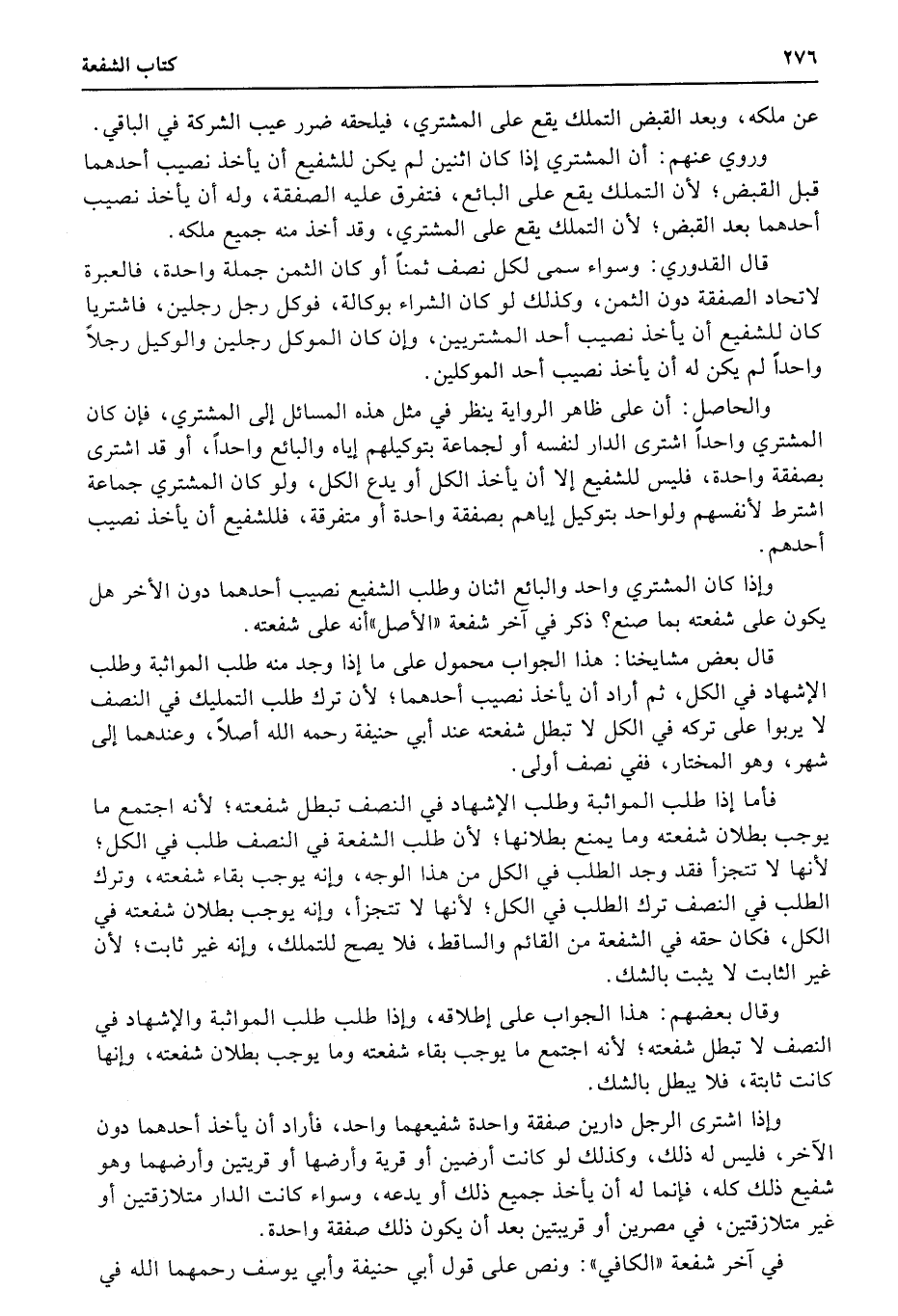 في آخر شفعة «الكافي» : ونص على قول أبي حنيفة وأبي يوسف رحمهما الله في