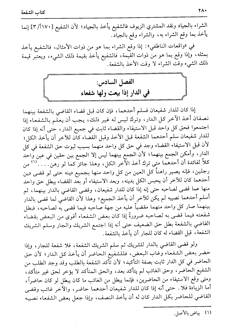 الفصل السادس: في الدار إذا بيعت ولها شفعاء