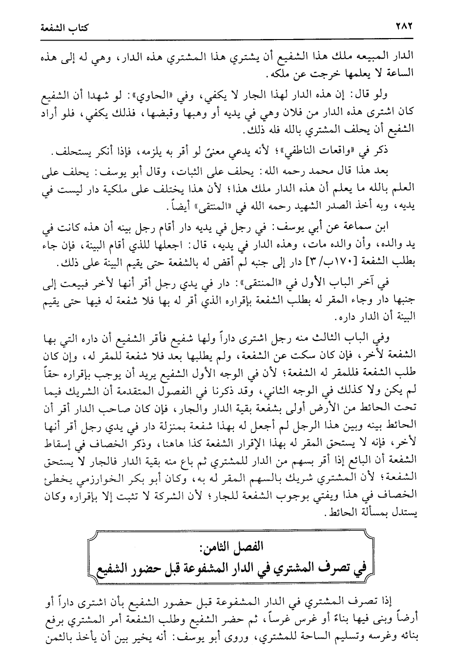 الفصل الثامن: في تصرف المشتري في الدار المشفوعة قبل حضور الشفيع