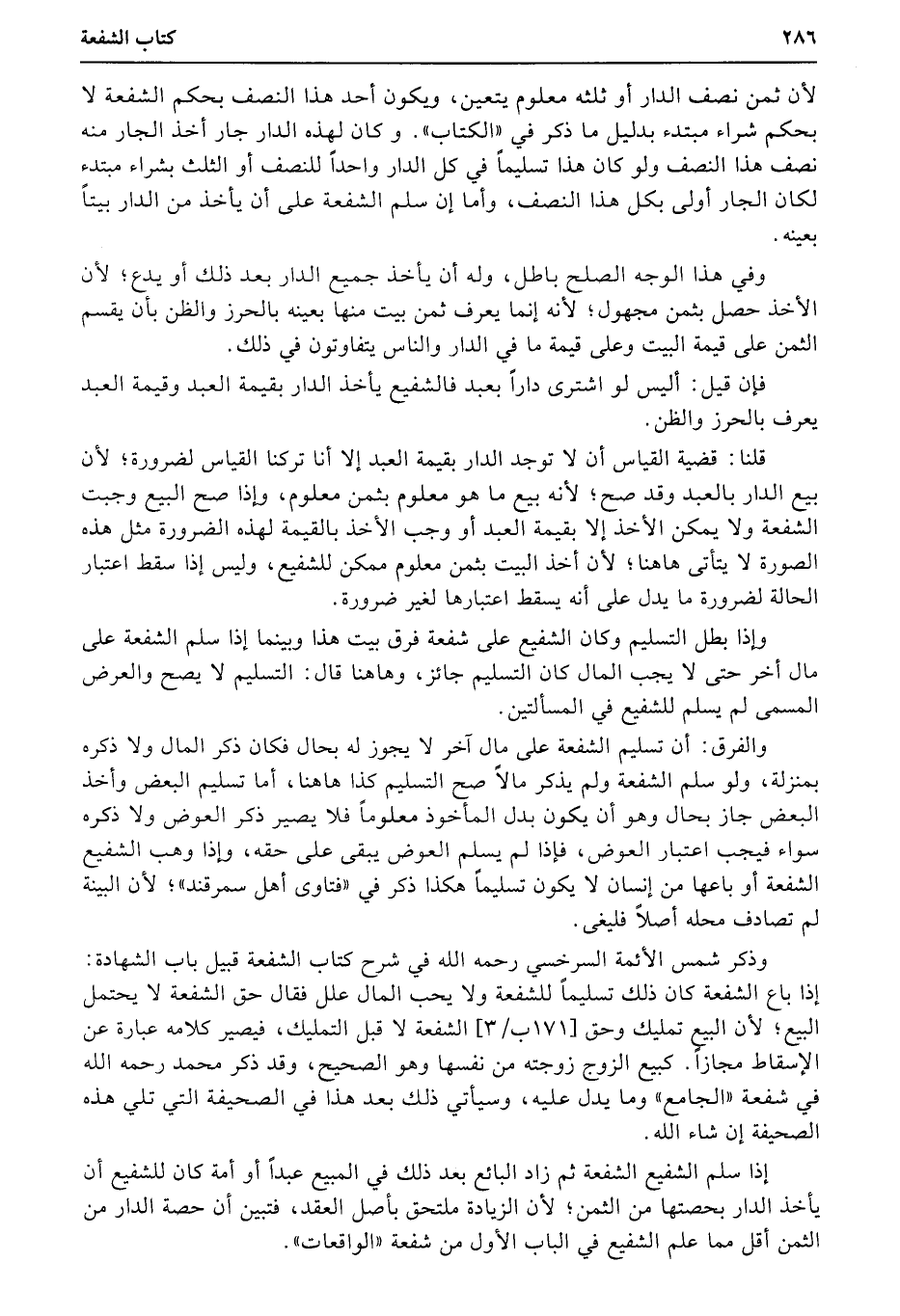 كبيع الزوج زوجته من نفسها وهو الصحيح، وقد ذكر محمد رحمه الله في شفعة «الجامع» وما يدل عليه، وسيأتي ذلك بعد هذا في الصحيفة التي تلي هذه الصحيفة إن شاء الله.