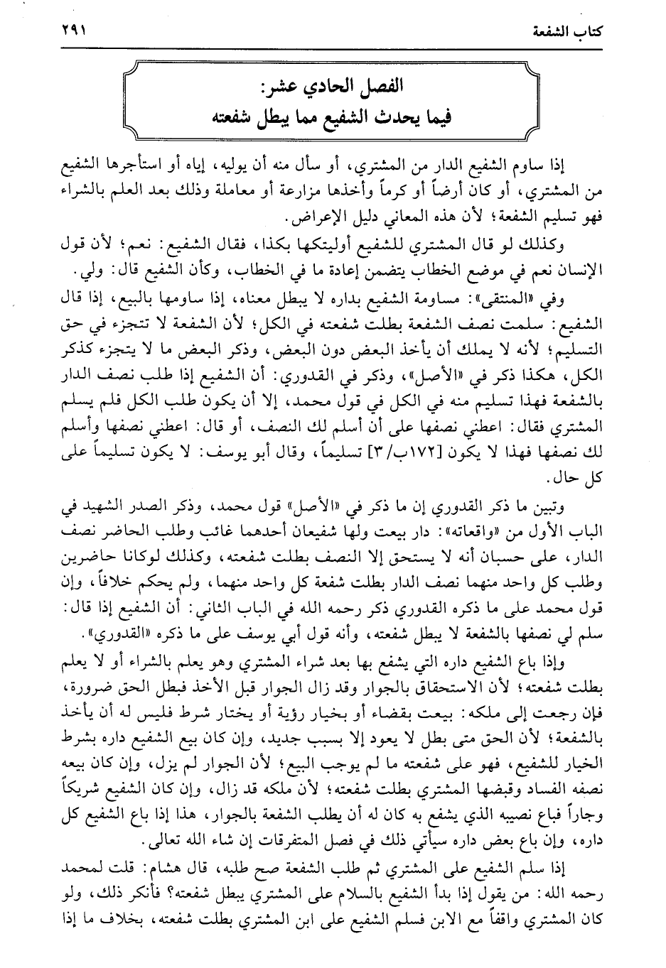 الفصل الحادي عشر: فيما يحدث الشفيع مما يبطل شفعته