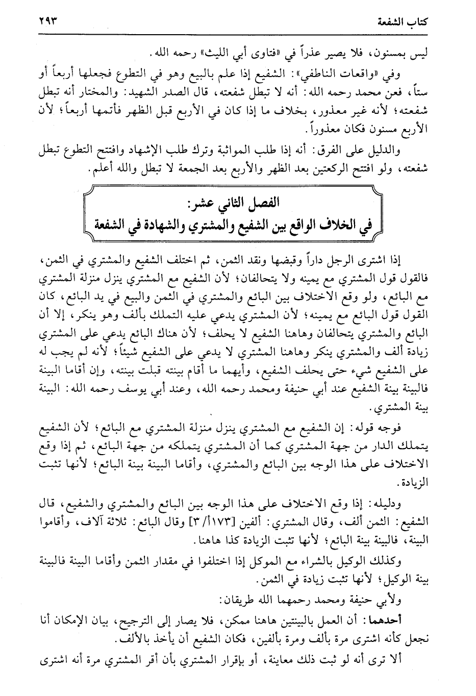 الفصل الثاني عشر: في الخلاف الواقع بين الشفيع والمشتري والشهادة في الشفعة