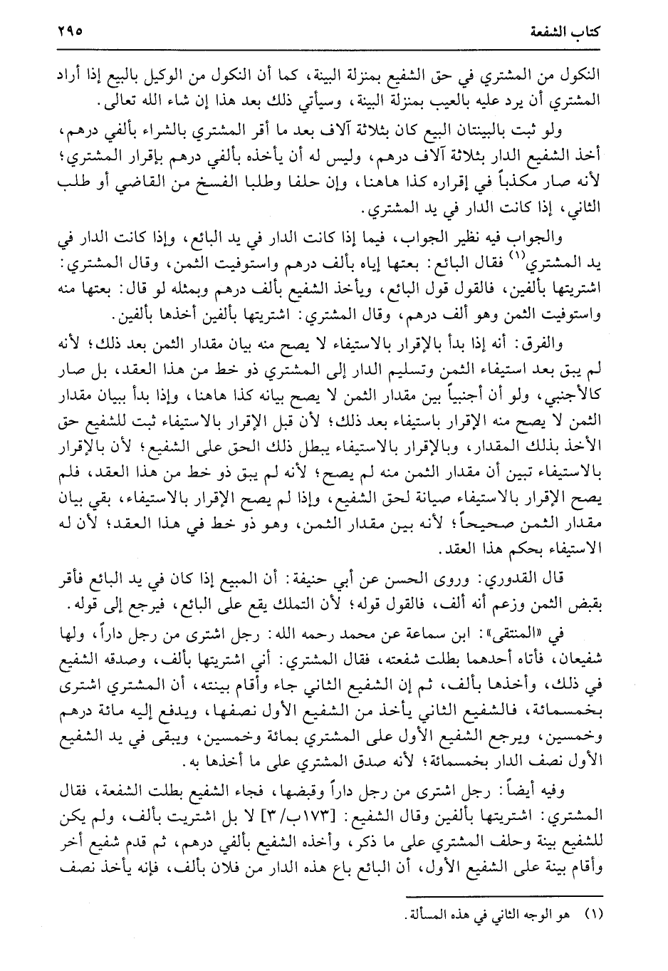 النكول من المشتري في حق الشفيع بمنزلة البينة، كما أن النكول من الوكيل بالبيع إذا أراد المشتري أن يرد عليه بالعيب بمنزلة البينة، وسيأتي ذلك بعد هذا إن شاء الله تعالى.