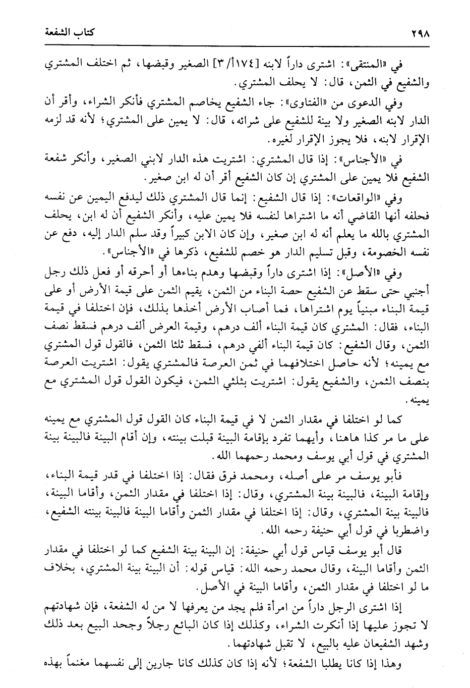 وفي الدعوى من «الفتاوى» : جاء الشفيع يخاصم المشتري فأنكر الشراء، وأقر أن الدار لابنه الصغير ولا بينة للشفيع على شرائه، قال: لا يمين على المشتري؛ لأنه قد لزمه الإقرار لابنه، فلا يجوز الإقرار لغيره.