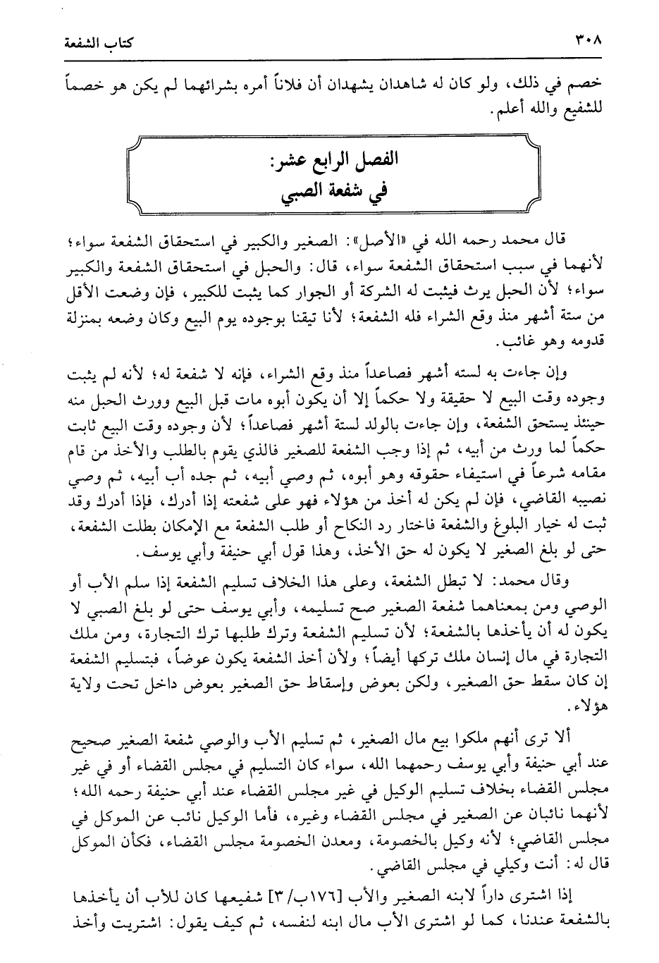 الفصل الرابع عشر: في شفعة الصبي