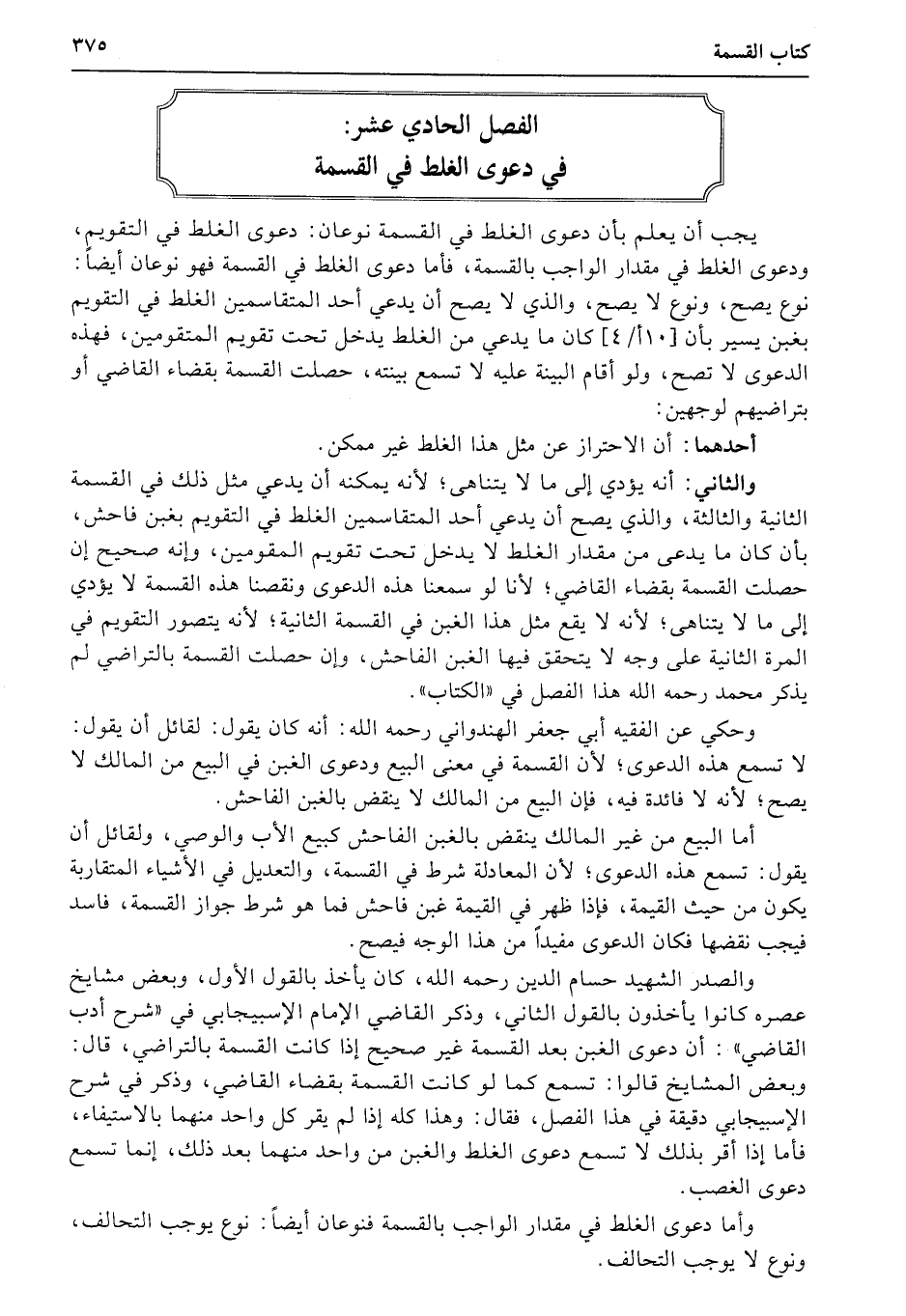 الفصل الحادي عشر: في دعوى الغلط في القسمة