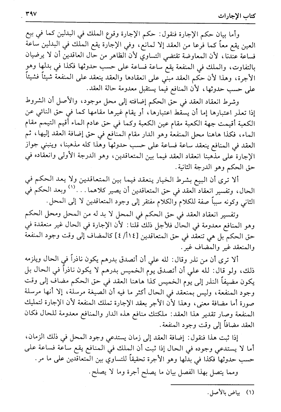 إذا ثبت هذا فنقول: إضافة العقد إلى زمان يستدعي وجود المحل في ذلك الزمان، أما لا يستدعي وجوده في الحال إذا ثبت أن الملك في المنافع يقع ساعة فساعة على حسب حدوثها فكذا في بدلها وهو الأجرة تحقيقاً للتساوي بين المتعاقدين على ما مر.