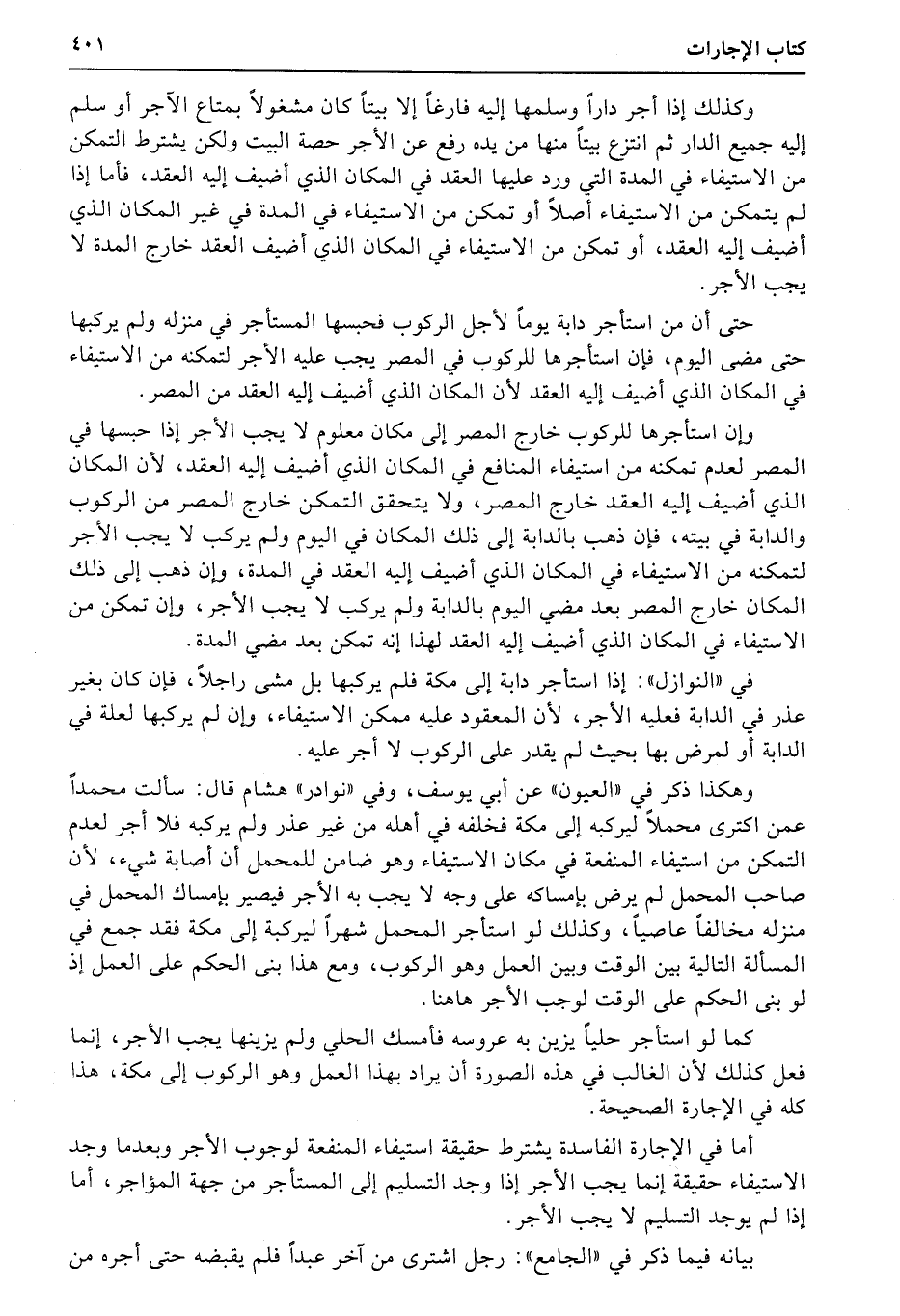 حتى أن من استأجر دابة يوماً لأجل الركوب فحبسها المستأجر في منزله ولم يركبها حتى مضى اليوم، فإن استأجرها للركوب في المصر يجب عليه الأجر لتمكنه من الاستيفاء في المكان الذي أضيف إليه العقد لأن المكان الذي أضيف إليه العقد من المصر.