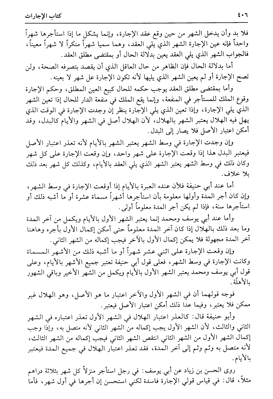 وإن وقعت الإجارة على اثني عشر شهراً أو ما أشبه ذلك من الأشهر المسماة وكانت الإجارة في وسط الشهر، فعلى قول أبي حنيفة تعتبر جميع الأشهر بالأيام، وعلى قول أبي يوسف ومحمد يعتبر الشهر الأول بالأيام ويكمل من الشهر الأخير وباقي الشهور بالأهلّة.