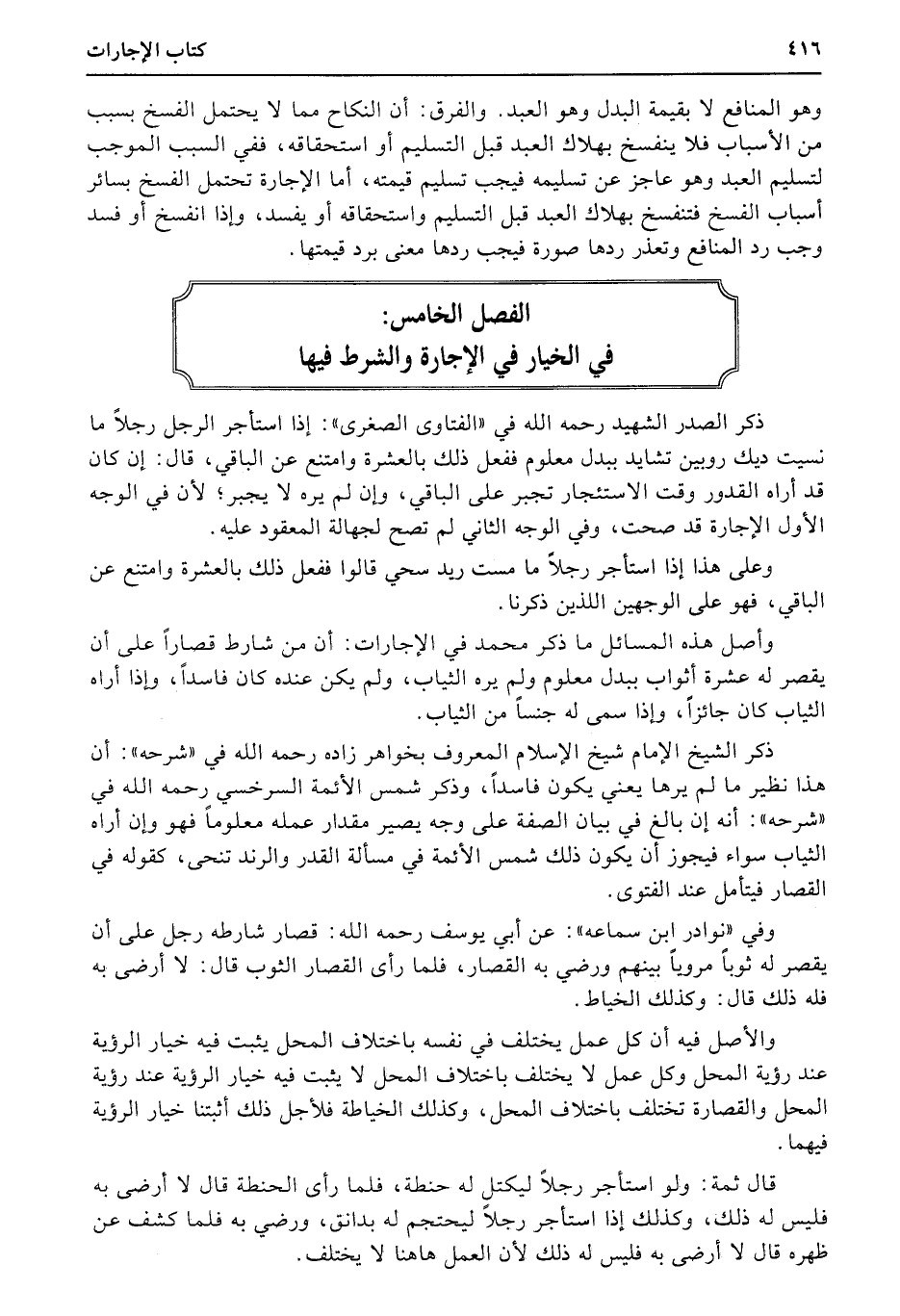 الفصل الخامس: في الخيار في الإجارة والشرط فيها