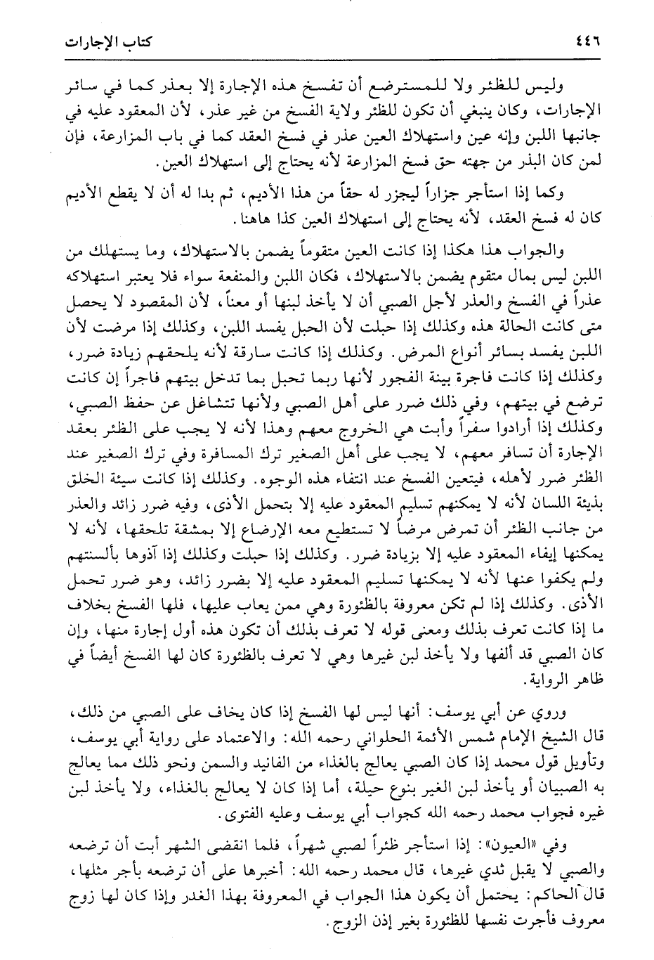 وليس للظئر ولا للمسترضع أن تفسخ هذه الإجارة إلا بعذر كما في سائر الإجارات، وكان ينبغي أن تكون للظئر ولاية الفسخ من غير عذر، لأن المعقود عليه في جانبها اللبن وإنه عين واستهلاك العين عذر في فسخ العقد كما في باب المزارعة، فإن لمن كان البذر من جهته حق فسخ المزارعة لأنه يحتاج إلى استهلاك العين.
