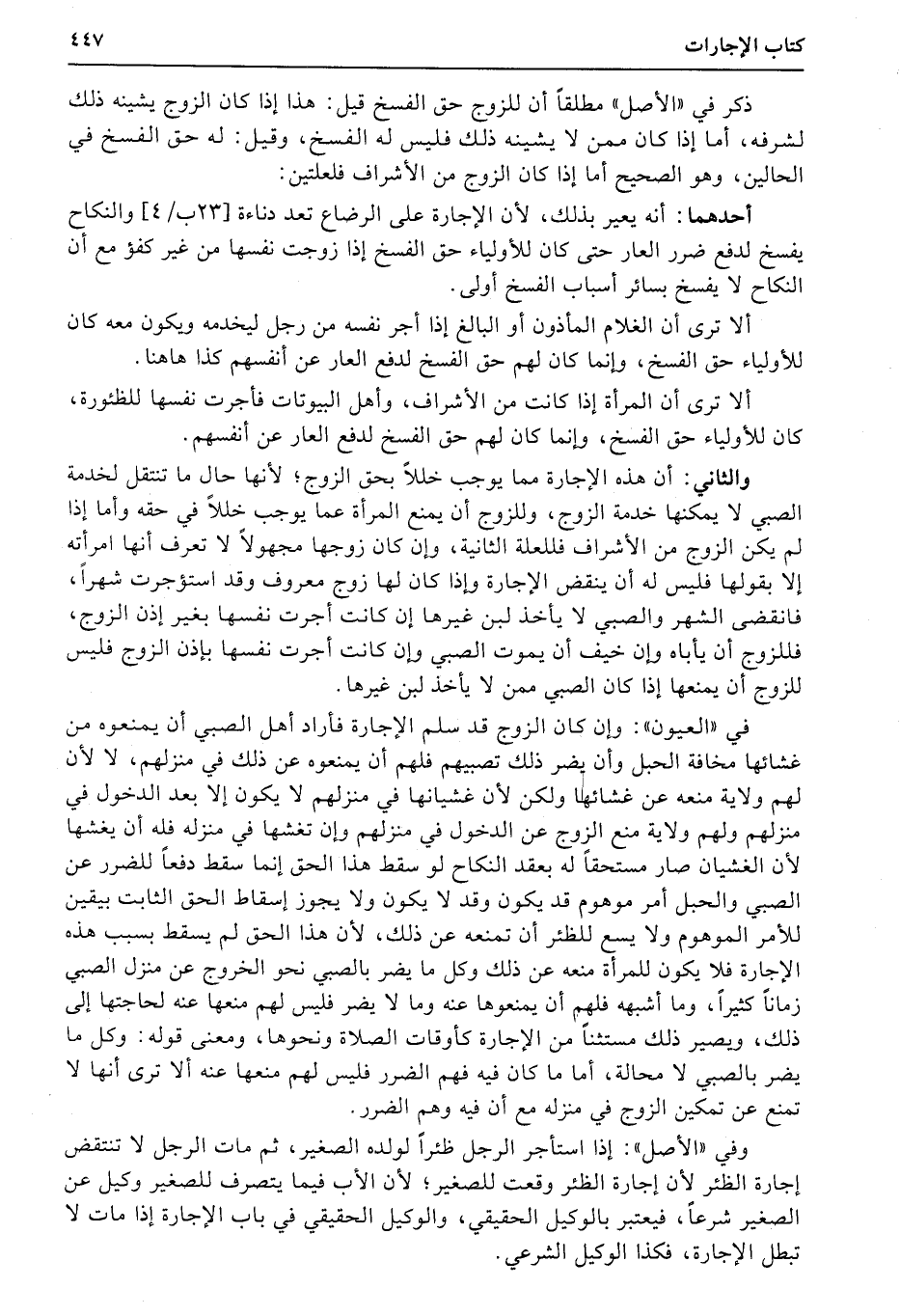 ألا ترى أن المرأة إذا كانت من الأشراف، وأهل البيوتات فأجرت نفسها للظئورة، كان للأولياء حق الفسخ، وإنما كان لهم حق الفسخ لدفع العار عن أنفسهم.