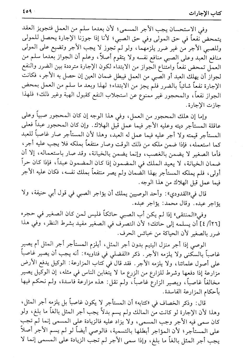 وفي الاستحسان يجب الأجر المسمى؛ لأن بعدما سلم من العمل فتجويز العقد يتمحض نفعاً في حق المولى وفي حق الصبي؛ لأنا إذا جوزنا الإجارة يحصل للمولى وللصبي الأجر من غير ضرر يلزمهما، ولو لم تجوز لا يجب الأجر وتضيع على المولى منافع العبد وعلى الصبي منافع نفسه ولا يتقوم أصلاً، وعلم أن الجواز بعدما سلم من العمل تمحض نفعاً وامتناع الجواز من الابتداء لكون الإجارة مترددة بين الضرر والنفع لجواز أن يهلك العبد أو الصبي من العمل فيبطل ضمان العين إن حصل به الأجر، فكانت الإجارة نفعاً شائباً بالضرر فلم يجز من الابتداء؛ لهذا وبعد ما سلم من العمل بمحض الجواز نفعاً، والمحجور غير ممنوع عن استجلاب النفع كقبول الهبة وغير ذلك؛ فلهذا جازت الإجارة.
