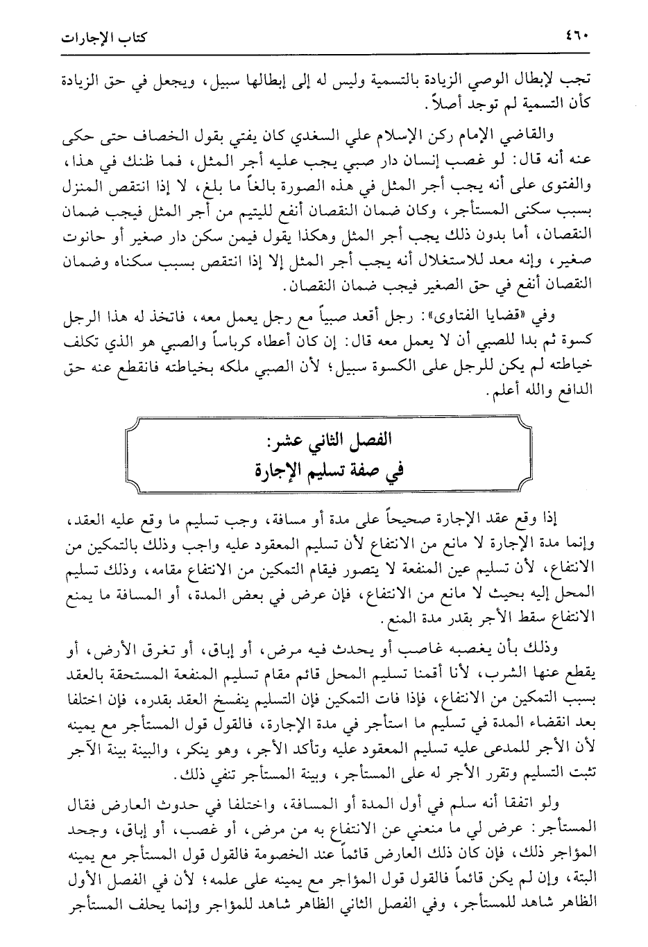 الفصل الثاني عشر: في صفة تسليم الإجارة