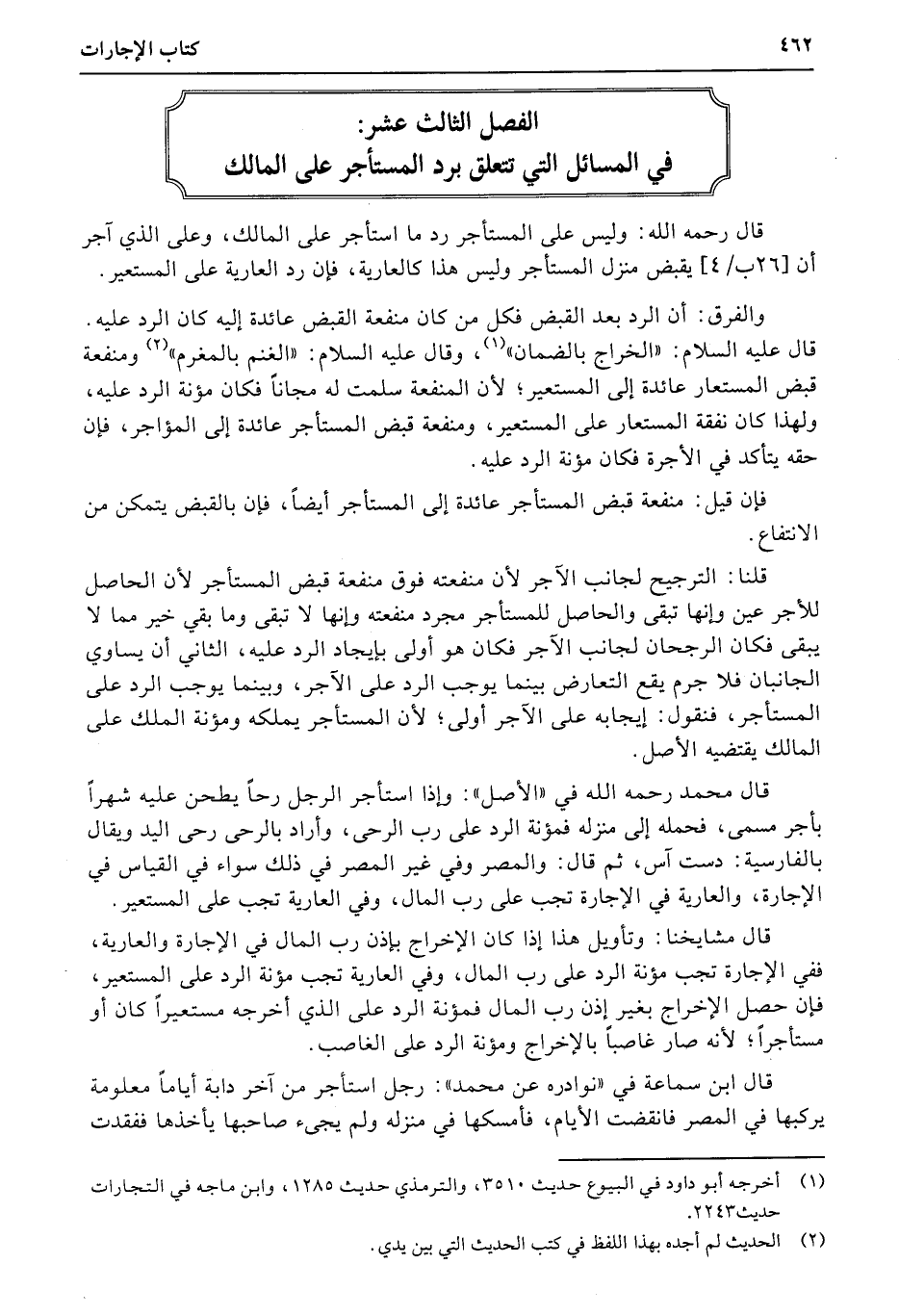 الفصل الثالث عشر: في المسائل التي تتعلق برد المستأجر على المالك