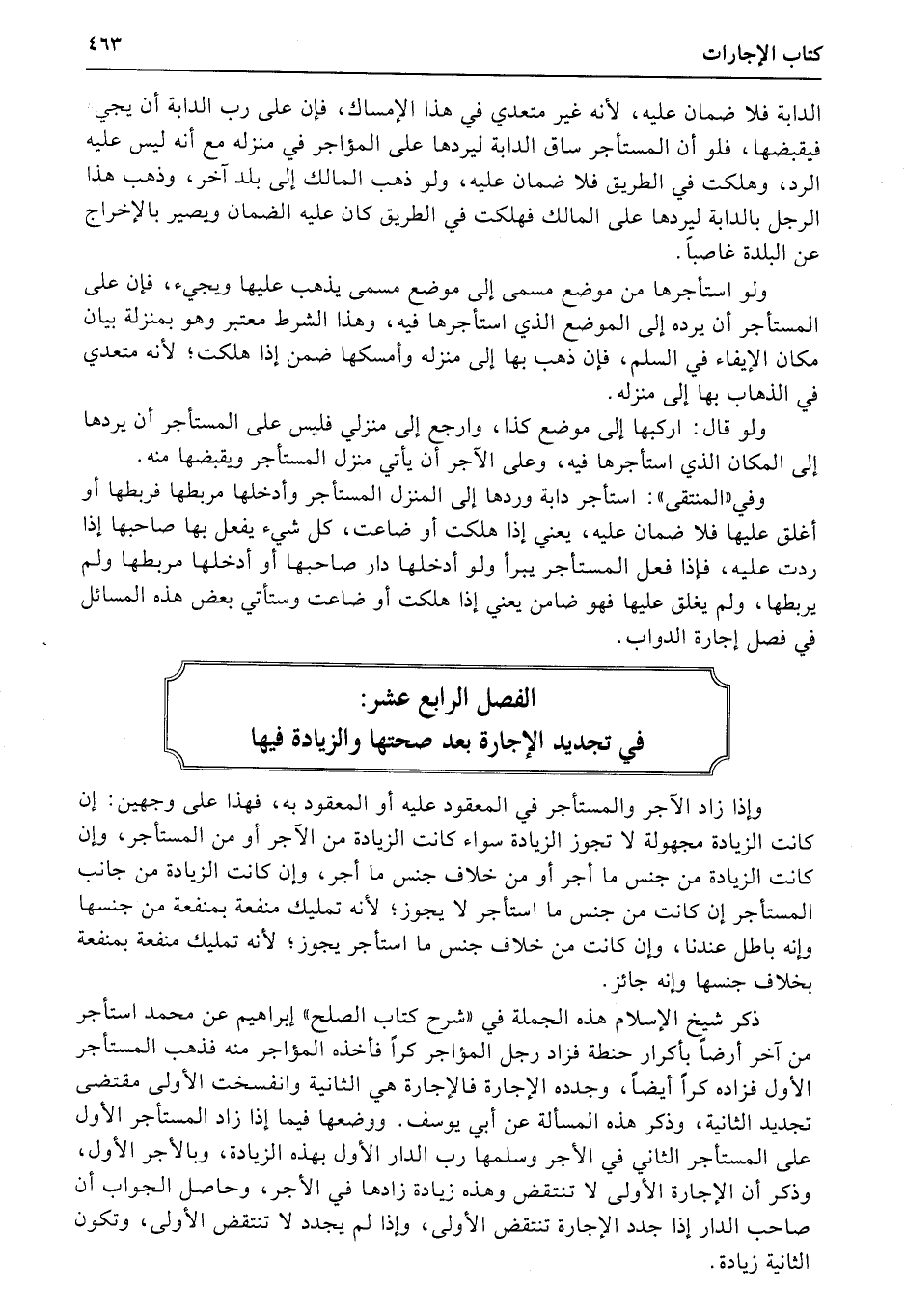 الفصل الرابع عشر: في تجديد الإجارة بعد صحتها والزيادة فيها