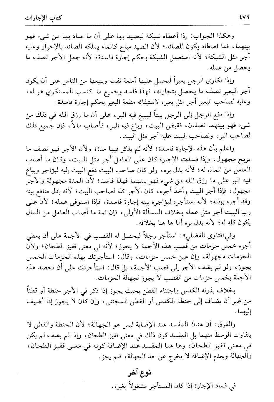 وإذا تكارى الرجل بعيراً ليحمل عليها أمتعة نفسه ويبيعها من الناس على أن يكون أجر البعير نصف ما يحصل بتجارته، فهذا فاسد وجميع ما اكتسب المستكري هو له، وعليه لصاحب البعير أجر مثل بعيره لاستيفائه منفعة البعير بحكم إجارة فاسدة.