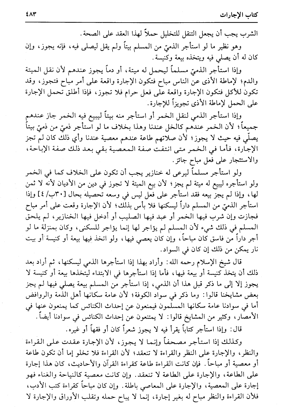 قال شيخ الإسلام رحمه الله: وأراد بهذا إذا استأجرها الذمي ليسكنها، ثم أراد بعد ذلك أن يتخذ كنيسة أو بيعة فيها، فأما إذا استأجرها في الابتداء ليتخذها بيعة أو كنيسة لا يجوز إلا إلى ما ذكر قبل هذا أن الذمي، إذا استأجر من المسلم بيعة يصلي فيها لم يجز بعض مشايخنا قالوا: وما ذكر في سواد الكوفة؛ لأن عامة سكانها أهل الذمة والروافض أما في سوادنا عامة سكانها المسلمون فيمنعون عن إحداث الكنائس كما يمنعون عنها في الأمصار، وكثير من المشايخ قالوا: لا يمتنعون عن إحداث الكنائس في سوادنا أيضاً.