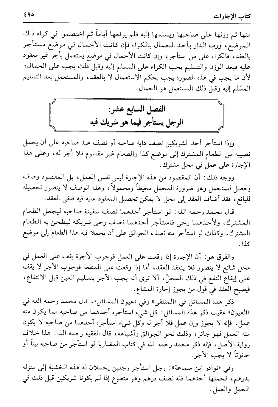 الفصل السابع عشر: الرَجل يستأجر فيما هو شريك فيه
