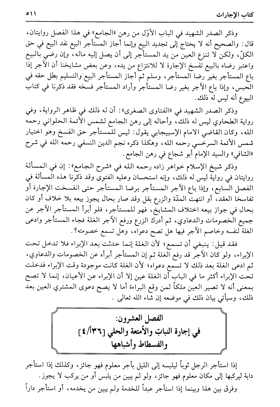 الفصل العشرون: في إجارة النباتِ والأمتعة والحلي (36أ4) والفسطاط وأشباهها