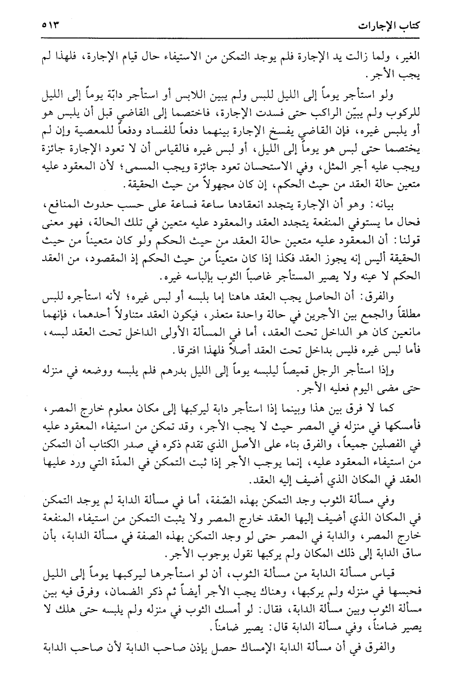 وفي مسألة الثوب وجد التمكن بهذه الصّفة، أما في مسألة الدابة لم يوجد التمكن في المكان الذي أضيف إليها العقد خارج المصر ولا يثبت التمكن من استيفاء المنفعة خارج المصر، والدابة في المصر حتى لو وجد التمكن بهذه الصفة في مسألة الدابة، بأن ساق الدابة إلى ذلك المكان ولم يركبها نقول بوجوب الأجر.