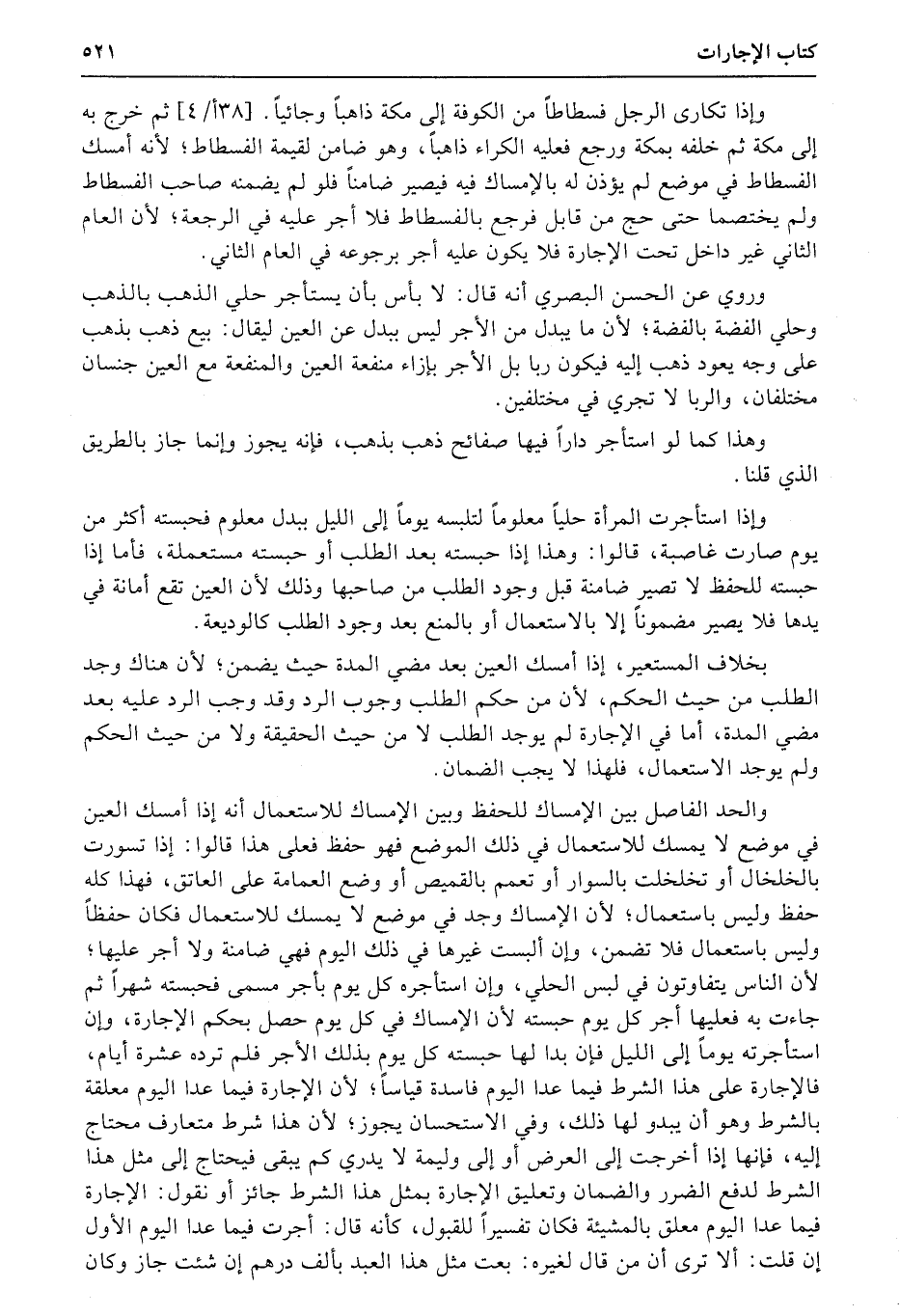 وروي عن الحسن البصري أنه قال: لا بأس بأن يستأجر حلي الذهب بالذهب وحلي الفضة بالفضة؛ لأن ما يبدل من الأجر ليس ببدل عن العين ليقال: بيع ذهب بذهب على وجه يعود ذهب إليه فيكون ربا بل الأجر بإزاء منفعة العين والمنفعة مع العين جنسان مختلفان، والربا لا تجري في مختلفين.