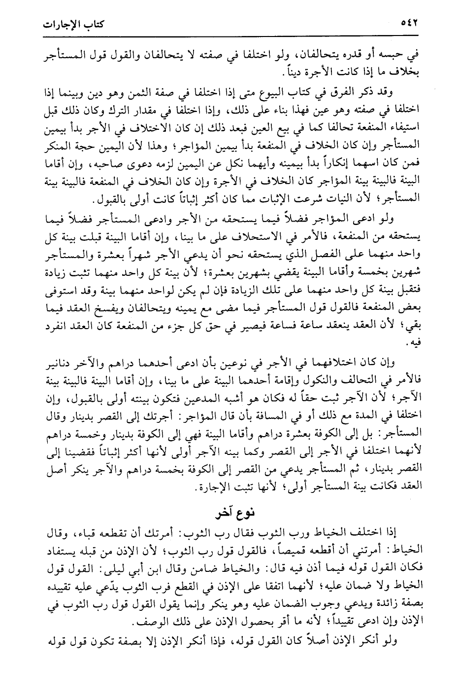 وقد ذكر الفرق في كتاب البيوع متى إذا اختلفا في صفة الثمن وهو دين وبينما إذا اختلفا في صفته وهو عين فهذا بناء على ذلك، وإذا اختلفا في مقدار الترك وكان ذلك قبل استيفاء المنفعة تحالفا كما في بيع العين فبعد ذلك إن كان الاختلاف في الأجر بدأ بيمين المستأجر وإن كان الخلاف في المنفعة بدأ بيمين المؤاجر؛ وهذا لأن اليمين حجة المنكر فمن كان اسهما إنكاراً بدأ بيمينه وأيهما نكل عن اليمين لزمه دعوى صاحبه، وإن أقاما البينة فالبينة بينة المؤاجر كان الخلاف في الأجرة وإن كان الخلاف في المنفعة فالبينة بينة المستأجر؛ لأن النيات شرعت الإثبات مما كان أكثر إثباتاً كانت أولى بالقبول.