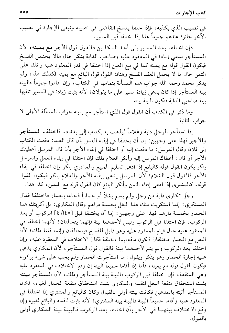 فإن اختلفا بعد المسير إلى أحد المكانين فالقول قول الآجر مع يمينه؛ لأن المستأجر يدعي زيادة في المعقود عليه وصاحب الدابة ينكر حال مالا يحتمل الفسخ فيكون القول قوله مع يمينه كما في بيع العين إذا اختلفا في قدر المعقود عليه واتفقا على الثمن حال مالا يحمل العقد الفسخ وهناك القول قول البائع مع يمينه فكذلك هذا، ولم يذكر محمد رحمه الله جواب هذه المسألة بتمامها في الكتاب، وإن أقاموا جميعاً فالبينة بينة المستأجر إذا كان يدعي زيادة مسير على ما يقولان؛ لأنه يثبت زيادة في المسير تنفيها بينة صاحبي الدابة فتكون البينة بينته.