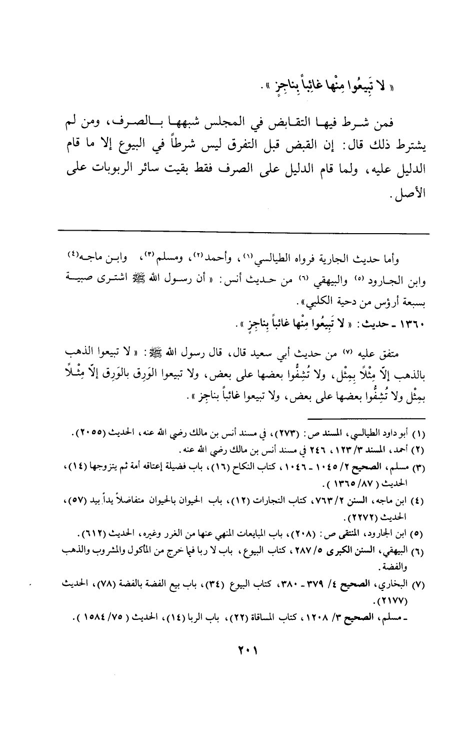 1360 - حديث: "لا تَبِيعُوا مِنْها غائبًا بِناجِزٍ".
