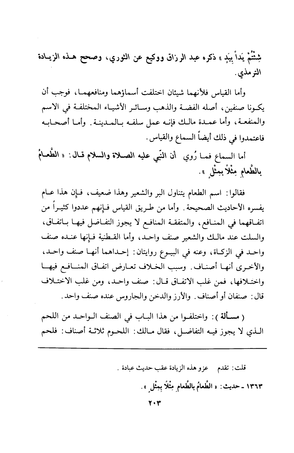 1363 - حديث: "الطَّعامُ بالطَّعامِ مِثْلًا بِمِثْلٍ".