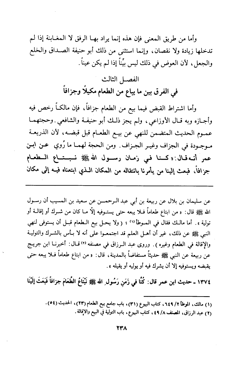1374 - حديث ابن عمر قال: كُنَّا في زَمَنِ رَسُولِ الله - صلى الله عليه وسلم - نَبْتَاعُ الطعَامَ جزافًا فَبَعَثَ إلَيْنَا
