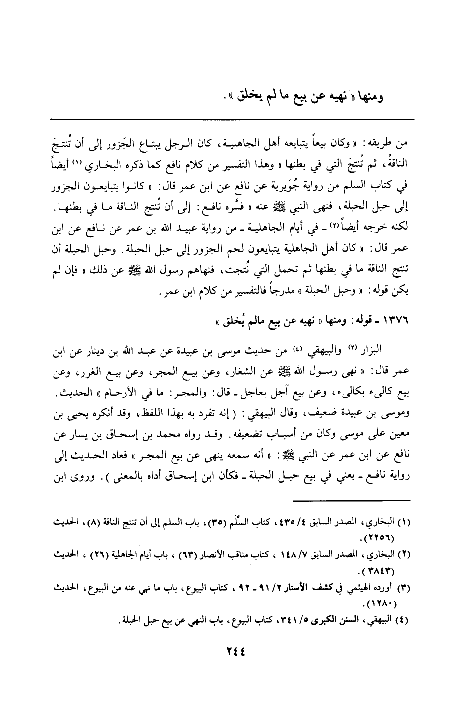 1376 - قوله: ومنها "نهيه عن بيع ما لم يُخلق".