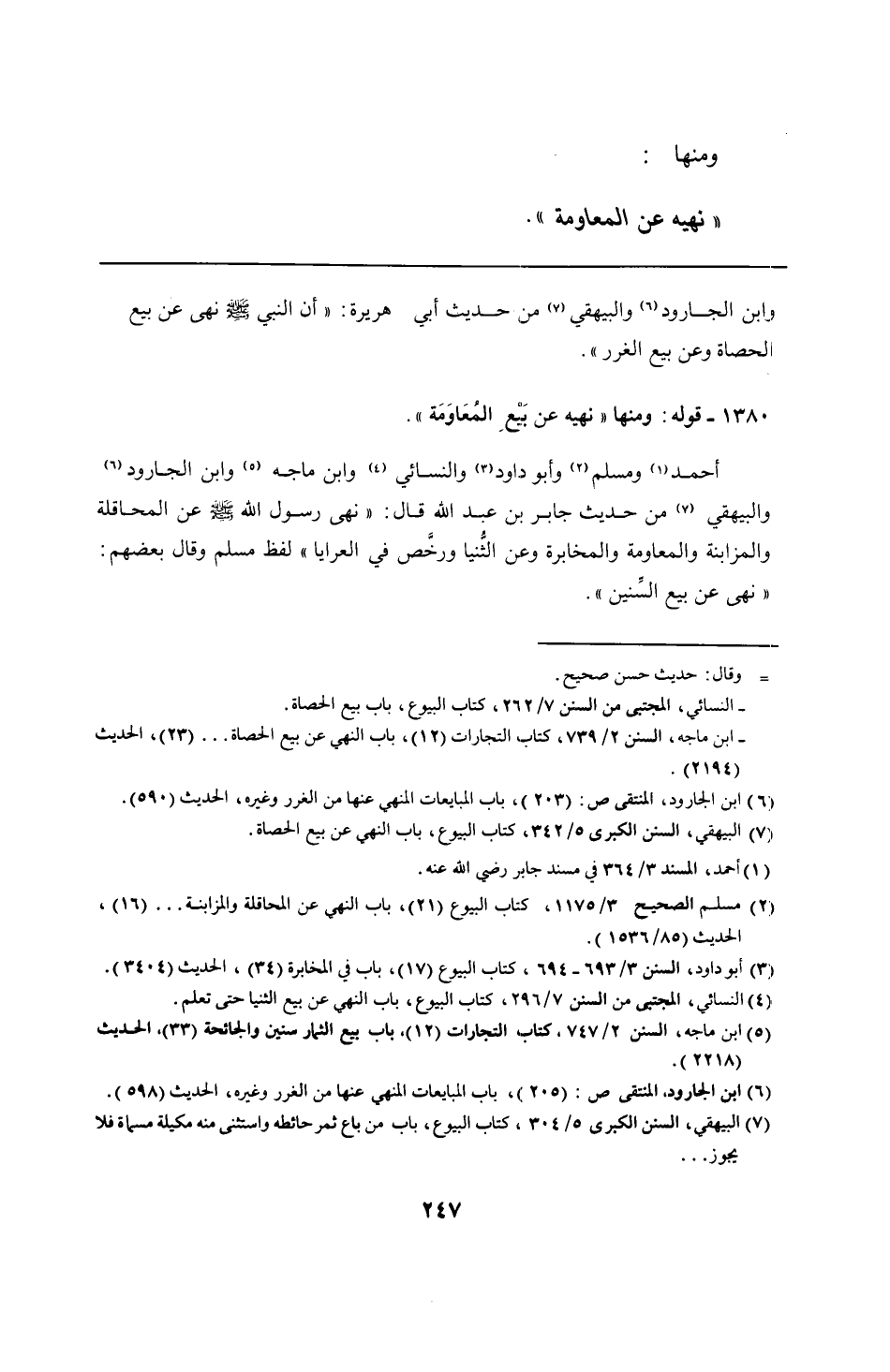 1380 - قوله: ومنها "نهيه عن بَيعِ المُعَاوَمَة".
